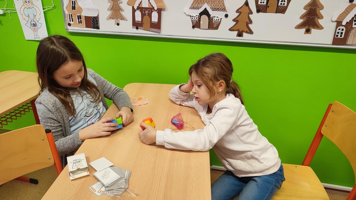 Připraveno bylo malé pohoštění a pod stromečkem spoustu dárků. Mohly se těšit na různé společenské a logické hry, Lego, stavebnici Gravitrax, švihadla, kladinu a kruhy na skládání opičích drah, gymnastické stuhy a žonglovací pomůcky diabolo. Klukům i holkám zářily oči štěstím a radostí a my moc děkujeme Ježíšku.