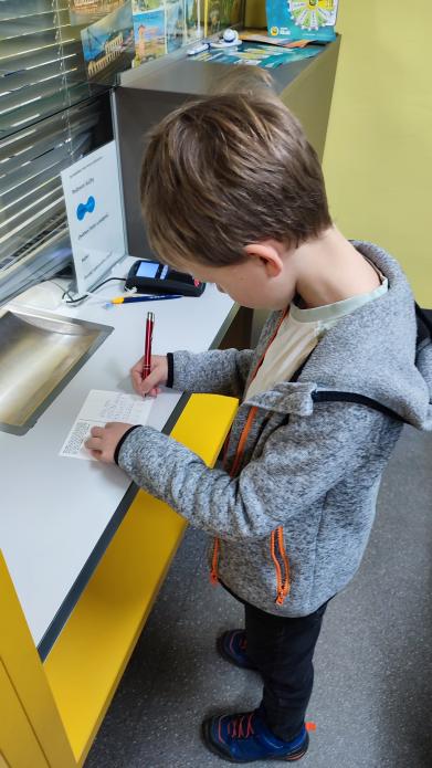 V úterý 21. února 2025 jsme s dětmi ze školní družiny navštívili Českou poštu. Na úvod se děti seznámily s historií pošty. Poté si mohly vlastnoručně vyplnit pohlednici a orazit ji razítkem jako skuteční pošťáci¨.